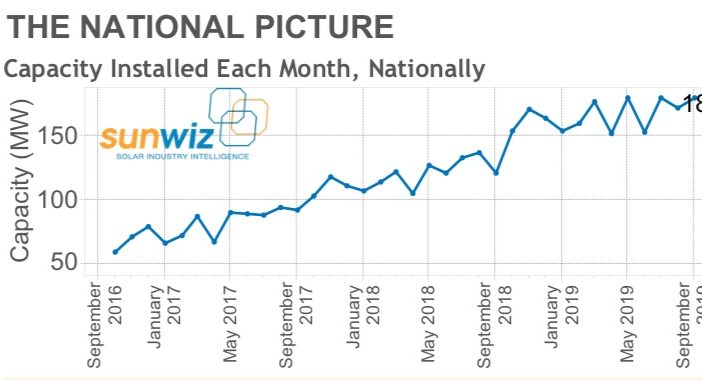 SunWiz director Warwick Johnston expects the 180MW figure for September could be revised downwards slightly, pending audits from the Clean Energy Regulator.