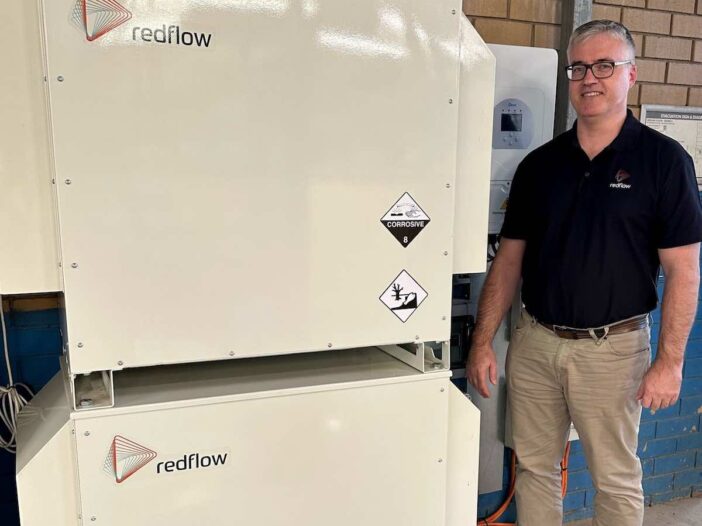 Redflow’s zinc-bromine flow battery’s store energy in electrolyte liquids – as distinct from lithium-ion batteries which store energy in metal.