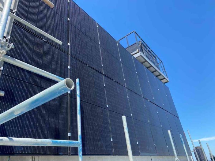 The total capacity of the vertical array was not specified, but Winconnect had said it would generate around 32,000kWh a year, the equivalent of powering 11 apartments off-the-grid over that period, and save the building’s owners’ corporation $6000 a year on energy costs.