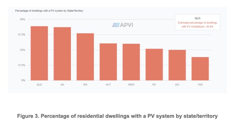 With close to 20GW of solar now installed on rooftops – residential, commercial, and industrial – across Australia, APVI says the average penetration of solar on free-standing homes now stands at 37%, while the average size of new rooftop installations sits at around 8.7kW.