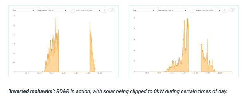 Here’s what RD&R looks like for an individual site. In theory, all homes and businesses who are RD&R capable could still produce solar energy for self-use (‘self-consumption’) but in reality very few systems actually do this – hence the 100% clipped solar production in the middle of the day that you can see below.