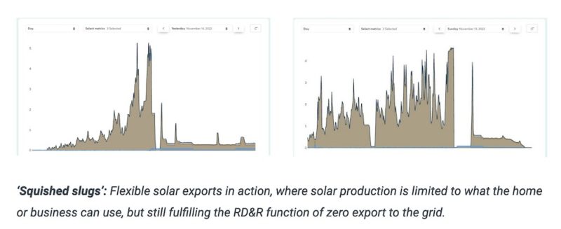As illustrated in the screenshot below, flexible exports sites are fulfilling the function of RD&R but preserving self-consumption for customers, meaning that even with the grid in ‘solar shutdown’ mode, system owners still get to benefit from their solar – they just can’t export any energy back to the grid (goodbye, feed-in tariff revenue). While not ideal, this is certainly better than ‘zero solar’.