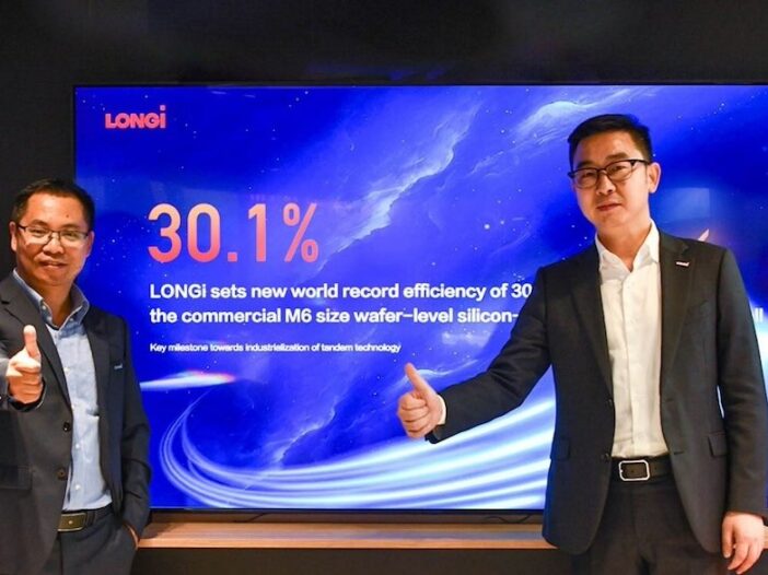 Chinese solar PV manufacturer Longi has set a new world record efficiency of 30.1 per cent for the commercial M6 size wafer-level silicon-perovskite tandem solar cell.