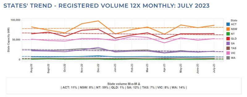 On a state-by-state basis, SunWiz says growth was led by New South Wales and Victoria, which managed to climb above their straight-line averages in July.