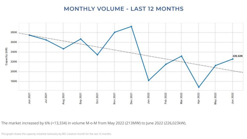 The very small jump in installations in June continues what is expected to be a choppy year for the small-scale solar market (0-100kW) in 2022.