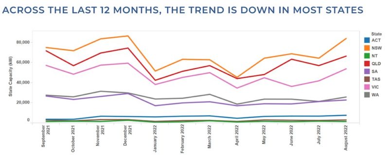 According to SunWiz’s August stats, all states and territories (except for the NT) reported increases in volume month-on-month, with NSW and Victoria charting the biggest growth of 30% and 28% respectively.