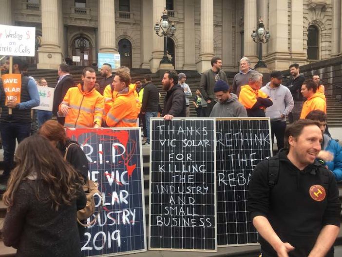 A second major protest in as many weeks will rally outside Victorian Parliament on Thursday, as the solar industry steps up calls for the state government to make urgent changes to its “disastrous” rooftop solar rebate.