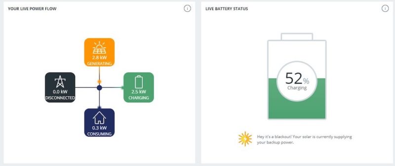 “Household didn’t know there was an outage until the neighbours were [complaining] of being out…. I had it on self-powered mode anyway, so house wasn’t using the grid. At other times, looking fwd to energy trading on peak pricing, to help quickly pay off battery π.”
