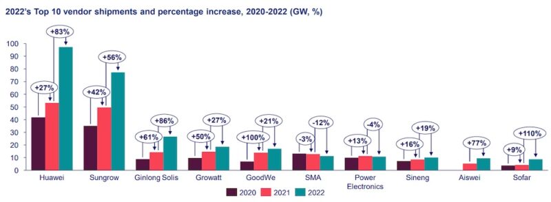 Huawei in particular benefited from a healthier market in 2022, with its shipments increasing by 83% to reach nearly 100GW.